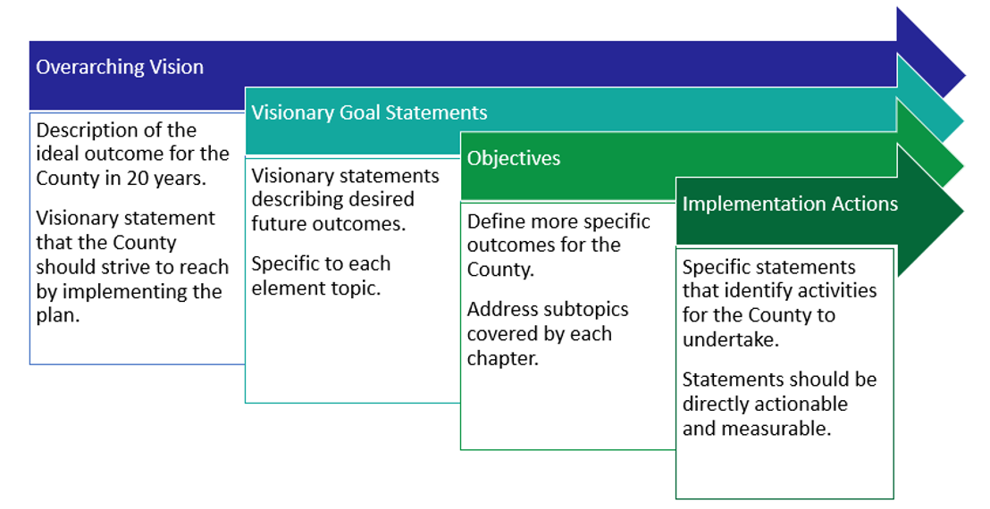The graphic below displays the goal structure of the 2045 Winona County Comprehensive Plan.